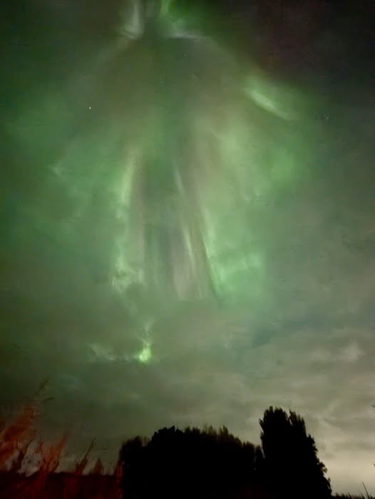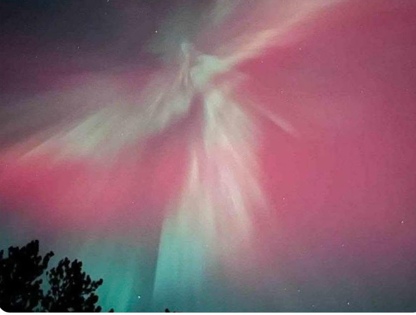 “The auroras pulled together into what looks like a dove rising out of the sky — wings wide, light bursting outward. It almost feels like the moment the sky takes a breath. Pure, powerful, and impossible to ignore. ✨#MrMBB333 #sky #phenomenon #aurora pic.twitter.com/u1jH7EENXb